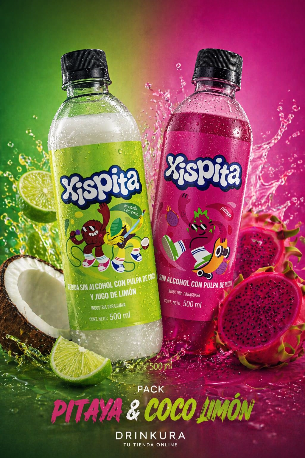 Incluye 6 botellas de 500 ml de Xispita Pitaya y 6 botellas de 500 ml de Xispita Coco & Limón, el pack perfecto para variar, refrescarte y disfrutar en cualquier momento del día.